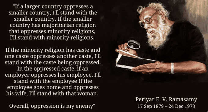 தி.மு.. பெரியாராக கொண்டாடும் பெரியாரே, எவனொருவன் ஒடுக்கப்படுகிறானோ அவன் பக்கம் நான் நிற்பேன் என்று சொன்னதாக தானே சொல்கிறார்கள்.