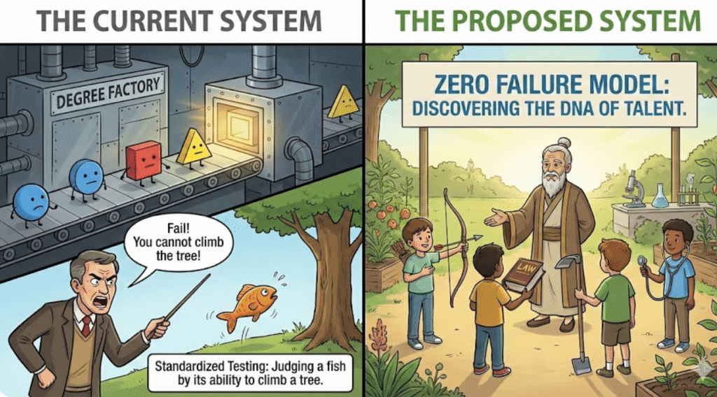 கல்வி நிலையங்கள் வெறும் பட்டங்களை வழங்கும் தொழிற்சாலைகளாக இல்லாமல், மாணவனின் தனித்திறனை (DNA of Talent) கண்டறியும் ஆய்க்கூடங்களாக மாற வேண்டும்.