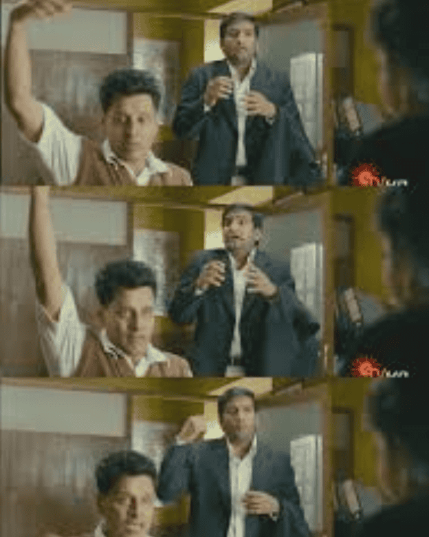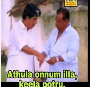 இந்த காமெடியில் சுதாகர் கோபியை பார்த்து சொல்வது போல எல்லா வாக்குறுதிகளிலும் அரியர். ஆனால், கோபி சொல்வது போல நாம் நெகட்டிவிட்டியை பரப்பாமல் இருப்போம் அப்படினா என்னங்கயா என்றால், கிறிஸ்துவர்கள் என்றால் இயல்பாக தி.மு.கவிற்கு தான் ஓட்டு இசுலாயமியர்களா தி.மு.கவிற்கு தான் ஓட்டு, அப்பா தி.மு.க.வா அதனால் தி.மு.கவிற்கு தான் ஓட்டு, இதையெல்லாம் தாண்டி படித்து நல்ல வேலையில் சொகுசாக வெளிநாட்டில் இருந்து கொண்டு தி.மு.க தான் ஜாதியை ஒழித்தது என்று நம்பிக்கொண்டு தி.மு.கவிற்கு தான் ஓட்டு என்று இப்படி தி.மு.க வை பரப்புகிறவர்கள் தி.மு.காவிற்கு பி.ஆர்.ஓ. வேலை செய்யாமல் இருப்பதற்கு பெயர் தான் நெகட்டிவிட்டியை பரப்பாமல் இருப்பது என்பதாகும்.