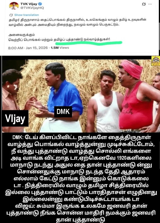 கடைசியாகப் புத்தாண்டிற்கு வந்துவிட்டார்கள். தமிழர்கள் இந்துக்கள் இல்லை, தமிழ் புத்தாண்டு தமிழர்கள் புத்தாண்டு இல்லை என்று சொல்லும் இவர்களுக்கு ஒன்று புரியவில்லை. பாரதம் மட்டும் என்று இல்லை, உலகில் எல்லா மூலைகளிலும் பரவலாக இருந்த சடங்கு முறைகள், நம்பிக்கைகள், காலண்டர்கள் எல்லாம் சேர்த்து அதற்கு ஒரு பெயர் வைக்கலாம் என்றால், இன்றைய தேதியில் அதை இந்து மதம் எனலாம்.